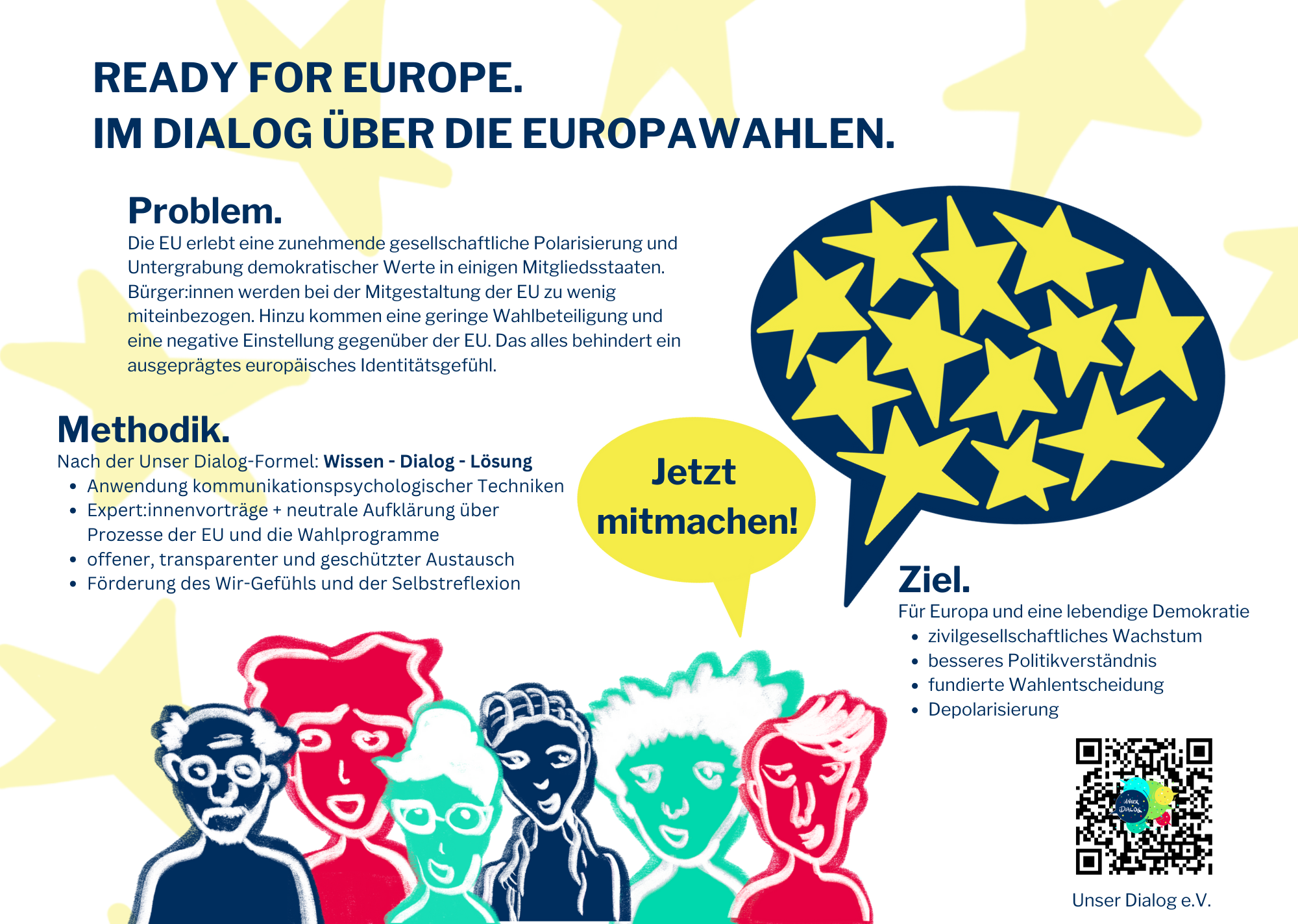| 01.05.24, 18:00 01.05.24, 20:00 | Deine Vision für Europa: Was soll Deine Wahl bewirken? | |
